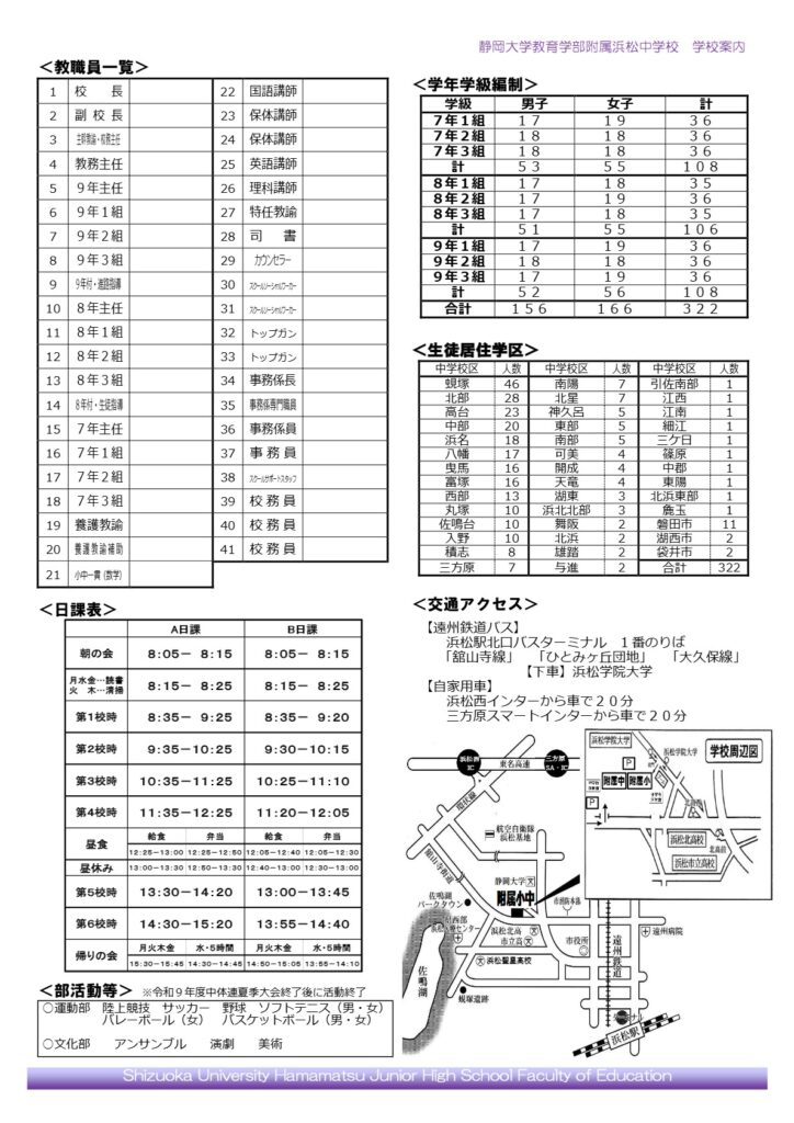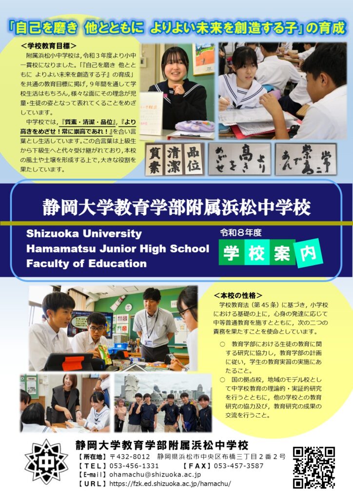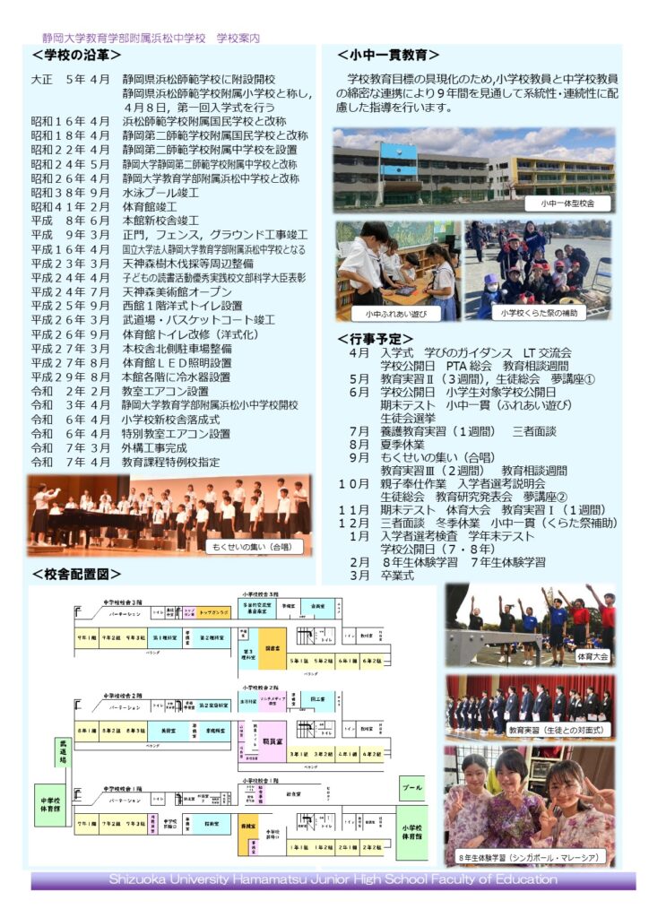 附属浜松小学校との小中一貫校として教育活動をさらに充実していくこととなりました。