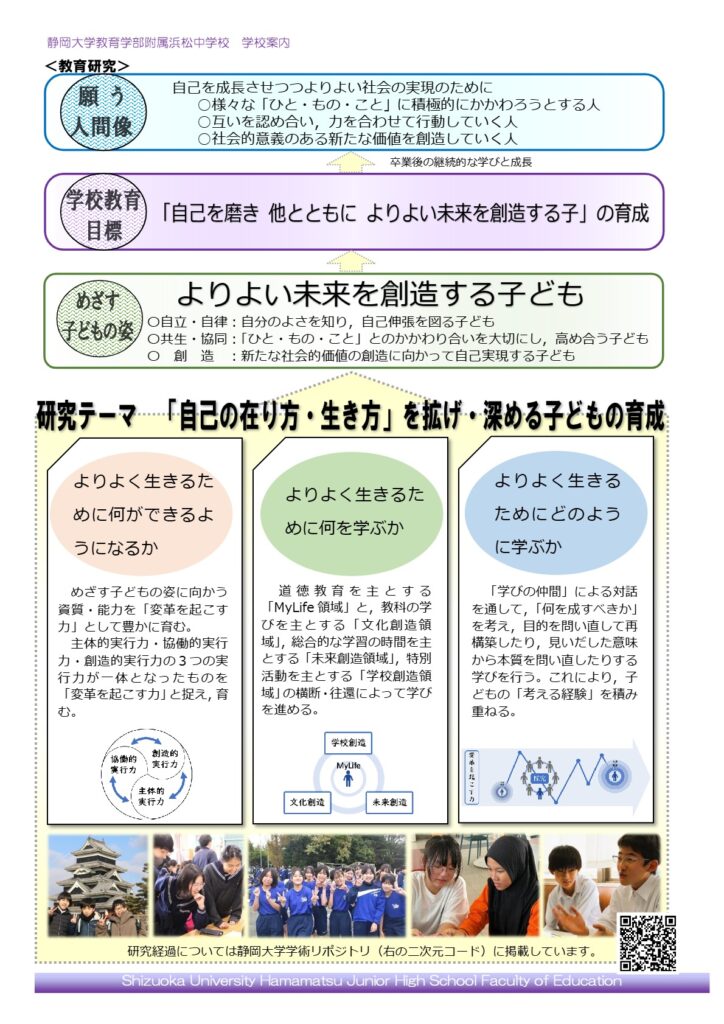 - 中学校教育の理論的・実証的研究を行うとともに,他の学校との教育研究の協力及び,教育研究の成果の交流を行うこと。