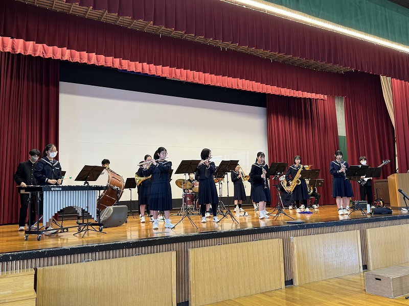 アンサンブル部の演奏で7年生を迎え,式が始まりました。