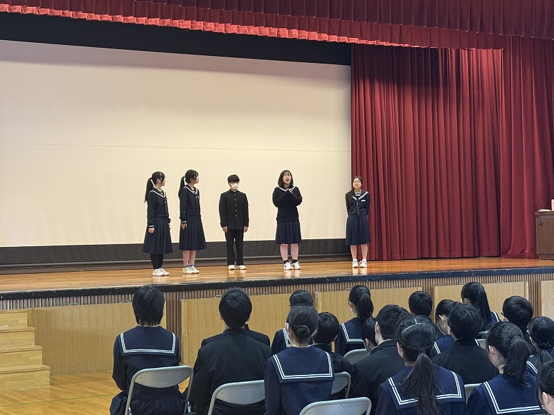 今日の対面式は,7年生だけではなく,8・9年生も改めて確認する場になったことと思います。