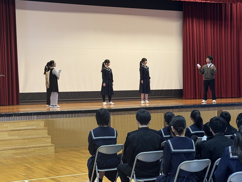 「生活のきまり」や部活動,登下校中の注意事項などを,ユーモアあふれる劇で,演劇部が全力で演じてくれました。