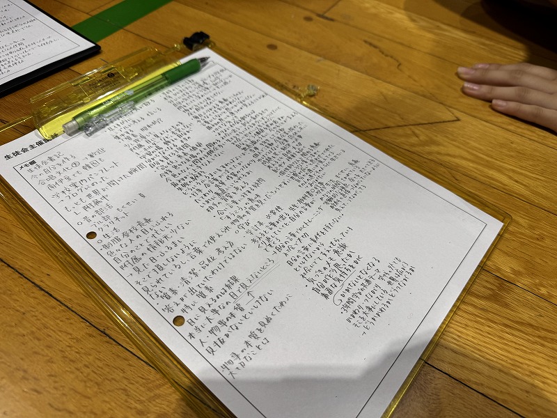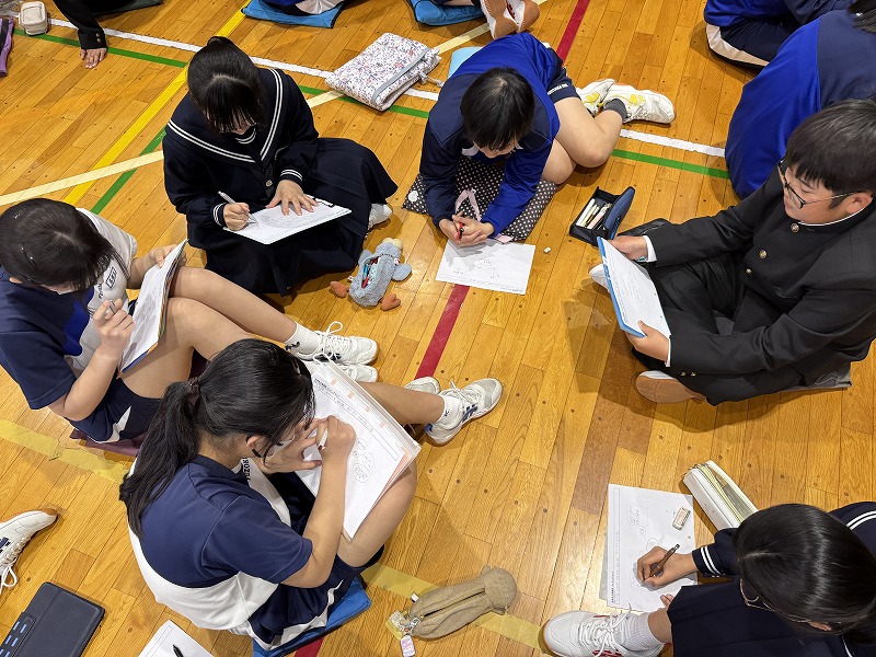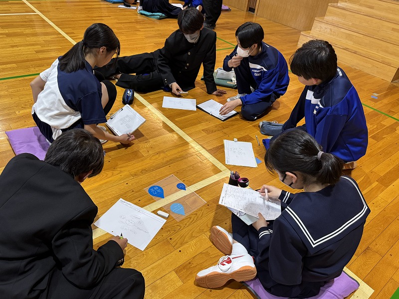 また,インタビューの後,縦割りでのグループを作り,この合言葉に対してウェビングを行いました。