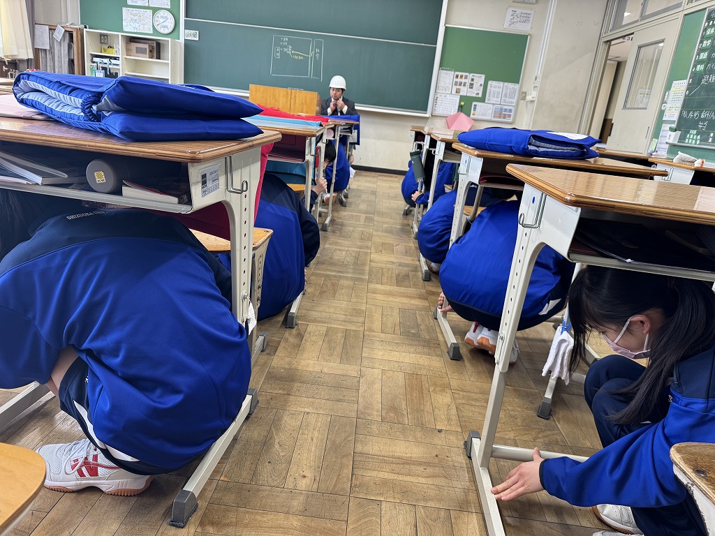 まず,地震発生後は机の下に避難し,揺れが収まるのを待ちました。