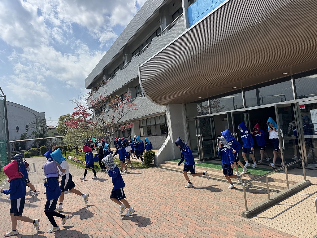 すべての学年がスムーズに避難でき,避難経路を確認するという目標は達成できたようです。