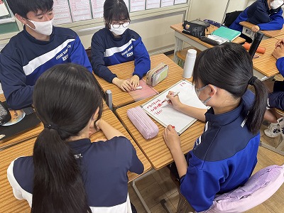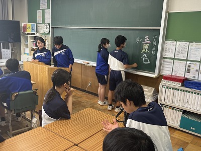 9年生では,この学級目標を達成するために,どのような行動を起こしていくか,何を大切にしたいか,また,何を意識していくかを学級全員で話し合いました。