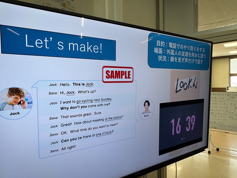 「外国人の友達を電話で何かに誘う」という設定で,どのように伝えたらよいか,何を伝えればよいのかを考えました。