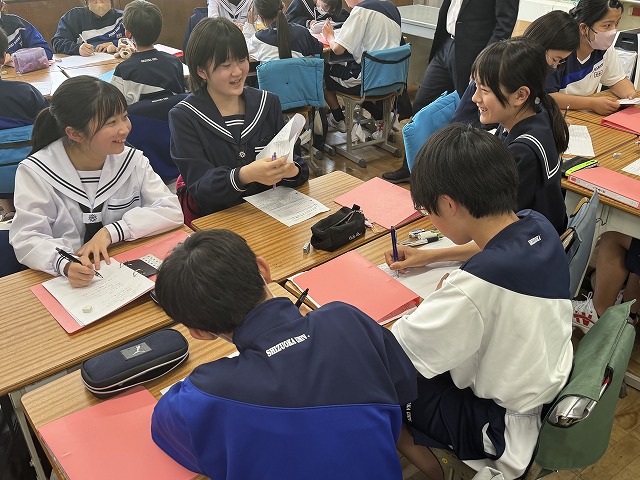 調べたことを生き生きと仲間に伝える姿は,すっかり附属浜松中生です。