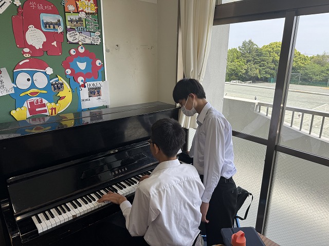 教室にあるピアノを弾いたり,友だちと談笑したり,教科の課題を進めていたり,委員会の活動を行ったりと,思い思いにのんびりした時間を過ごしています。