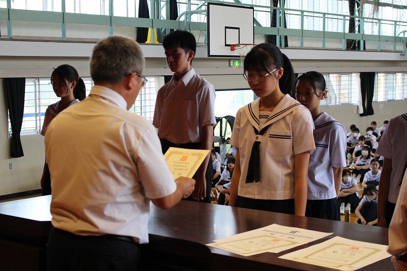 以下の表彰だけではなく,夏休み中には,多くの生徒が学校の代表として様々なところで活躍していたようです。
