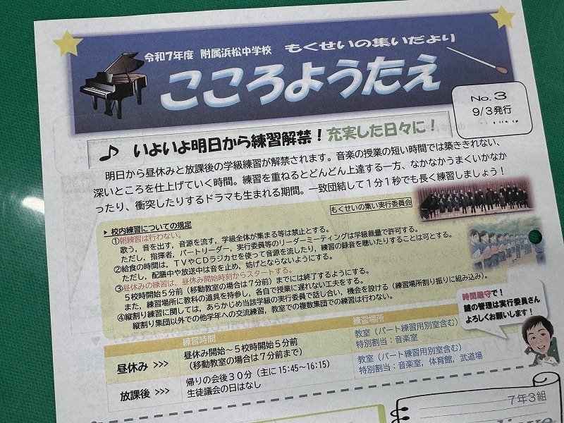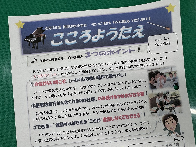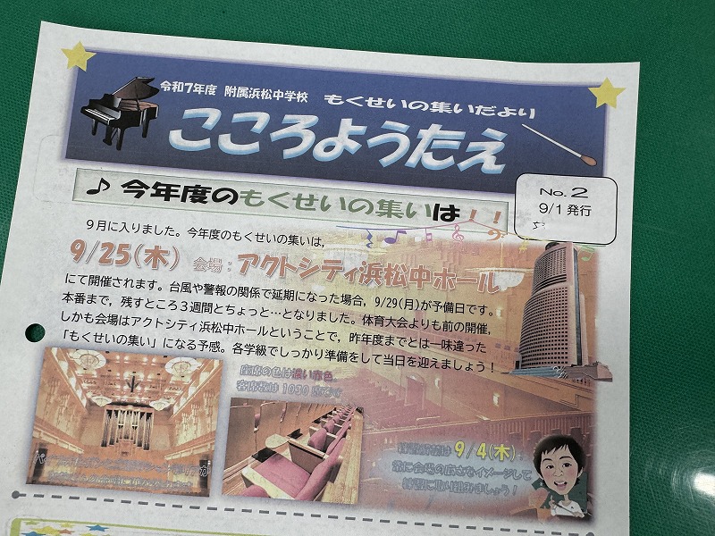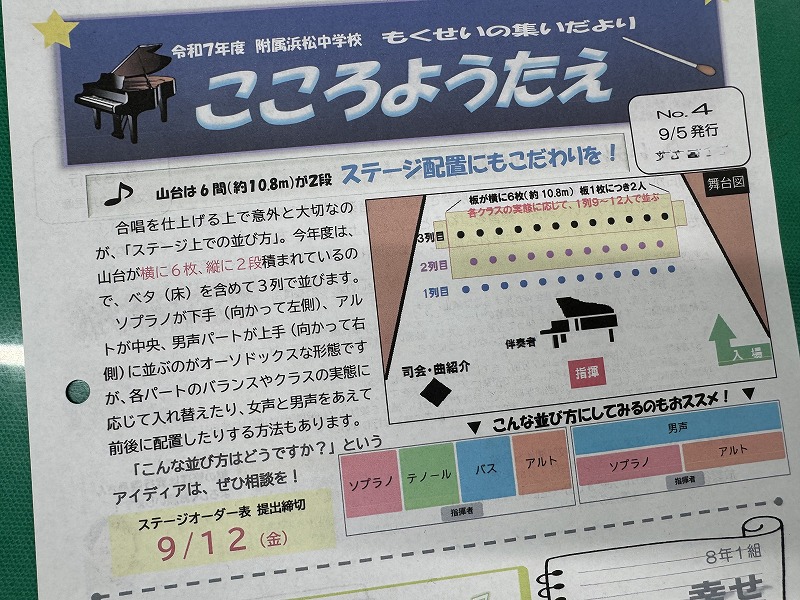 音楽科教員から「もくせいの集いだより『こころようたえ』」が発行されています。