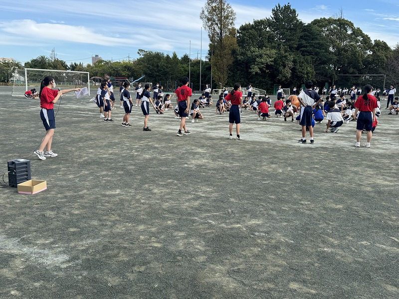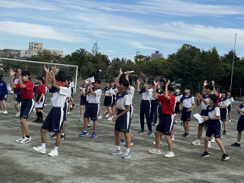 気候も涼しくなり,さわやかな秋晴れの中,9年生がリーダーシップを発揮しながら,元気よく練習に取り組みました。