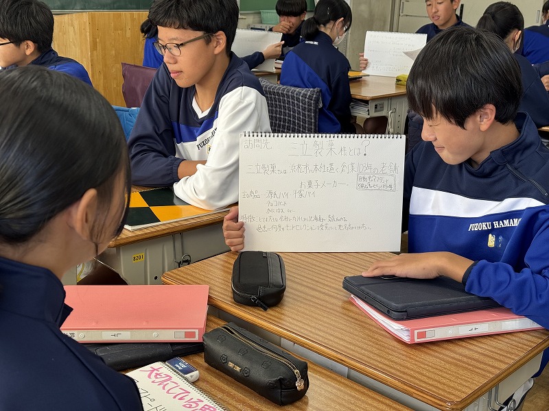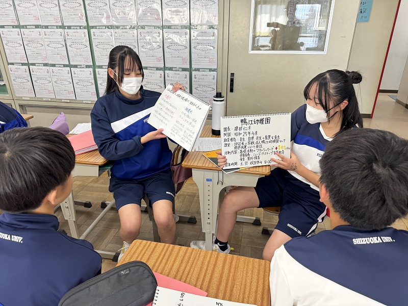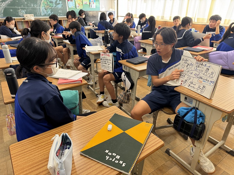 7月に行った「はままつ訪問」の内容や,2月に行う「シンガポール,マレーシア体験学習」を意識したりしながらスケッチブックにまとめていました。