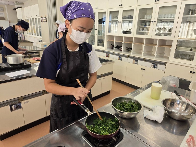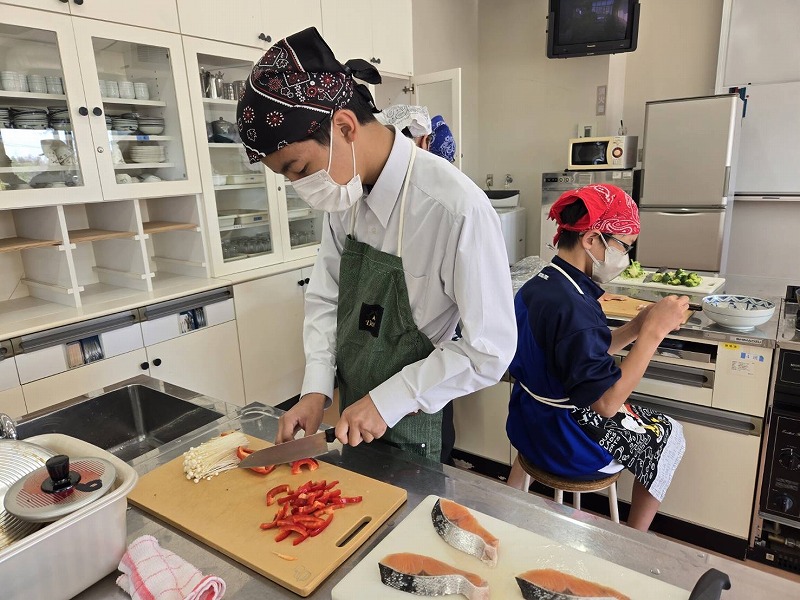静岡大学教育学部の家庭科専攻の学生が,調理の補助やアドバイスをしてくれています。