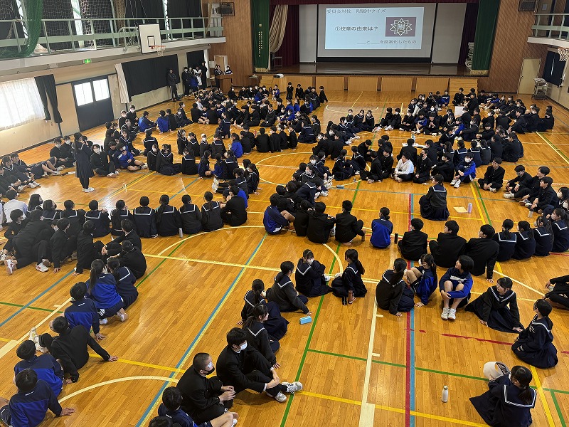 所属する委員会ごとに集まり,相談しながらクイズに回答していく時間があったり,全校で○×クイズを行ったり,午後の一時を,のんびり楽しく過ごすことができました。