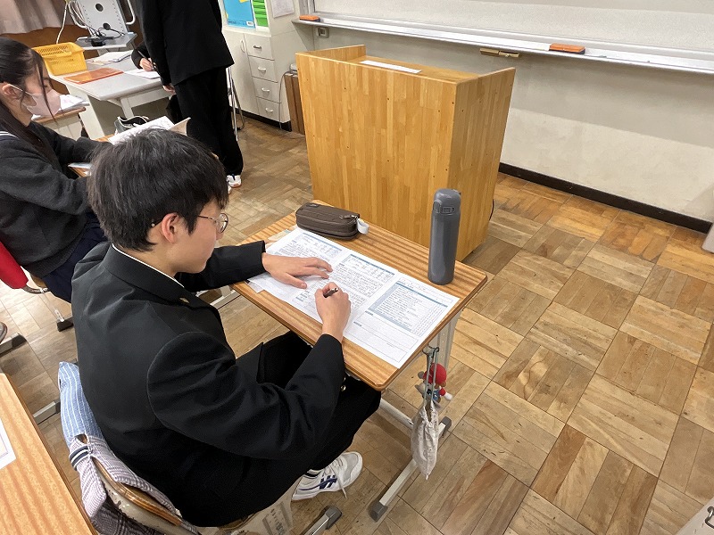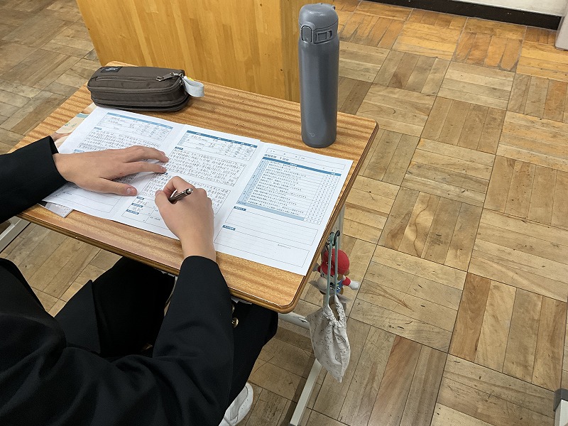 面接ガイドに自分の回答を整理したり,学級担任と面接練習を繰り返し行ったりしています。