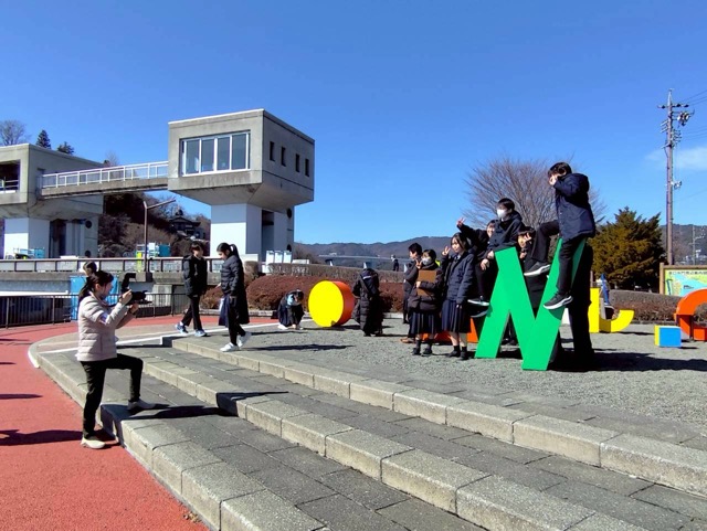 各学級、天竜川水系の源流である釜口水門へ行き学級写真と散策を行いました。
