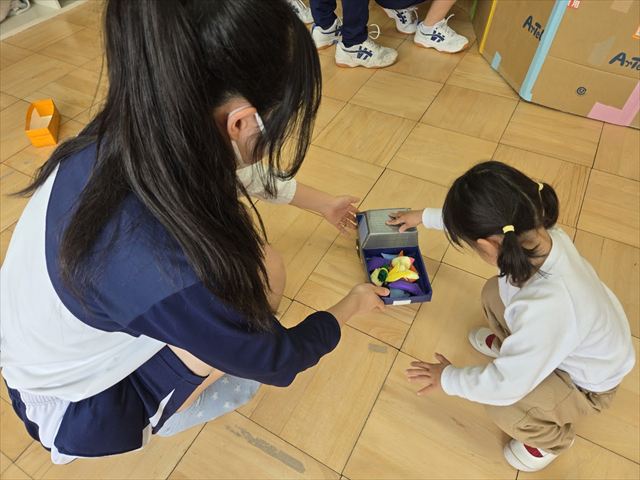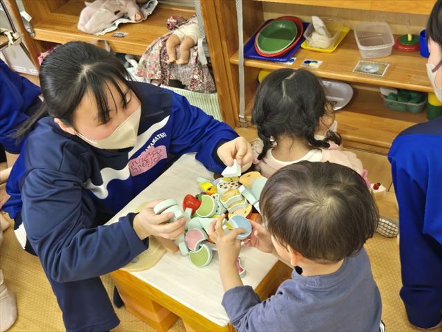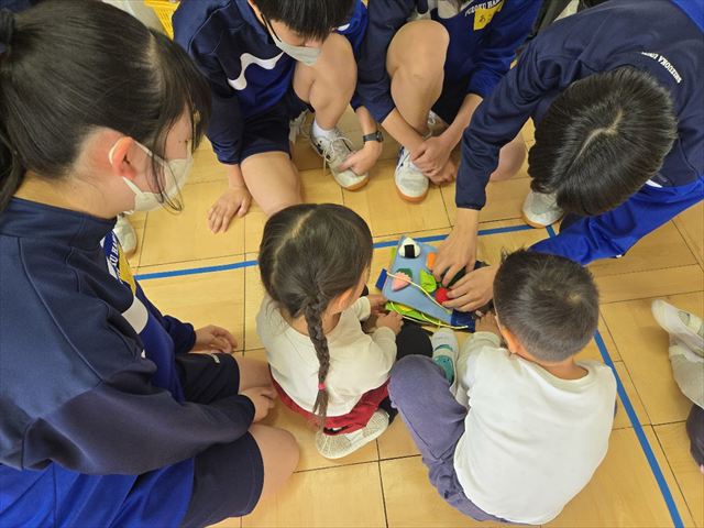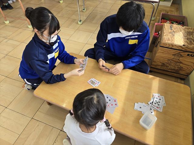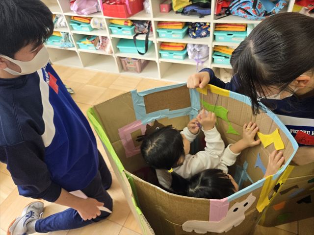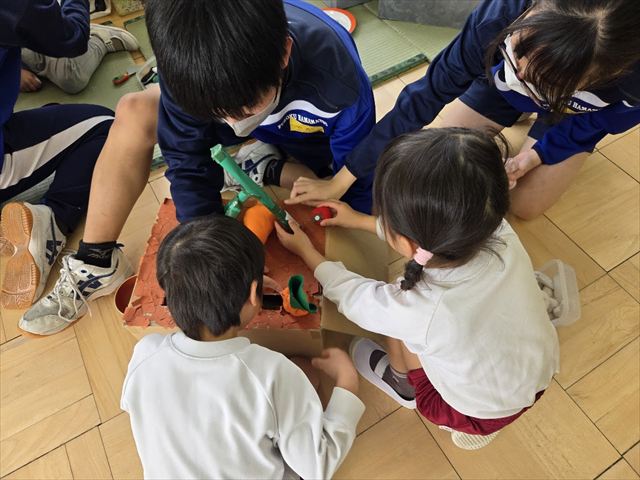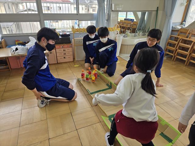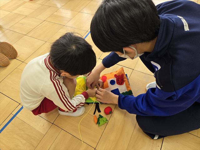 保育実習(9年1組 家庭科) 2026年2月24日 最終更新日時 : 2026年2月25日 hamachu 今日は9年1組が保育実習に行きました。自分たちで作ったおもちゃを持参し,幼児と一緒に遊ぶ姿はとってもほほえましい姿でした。笑顔あふれる実習になったと思います。これにて今年度の保育実習は終了となります。