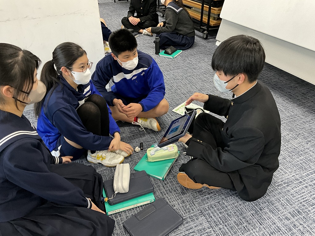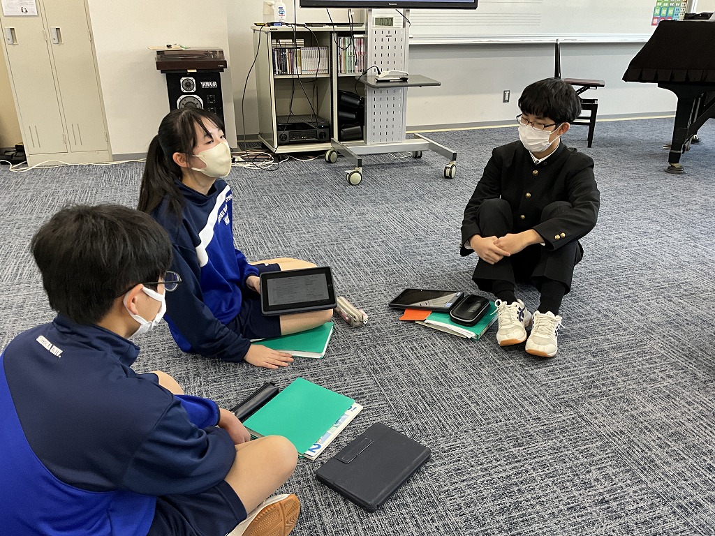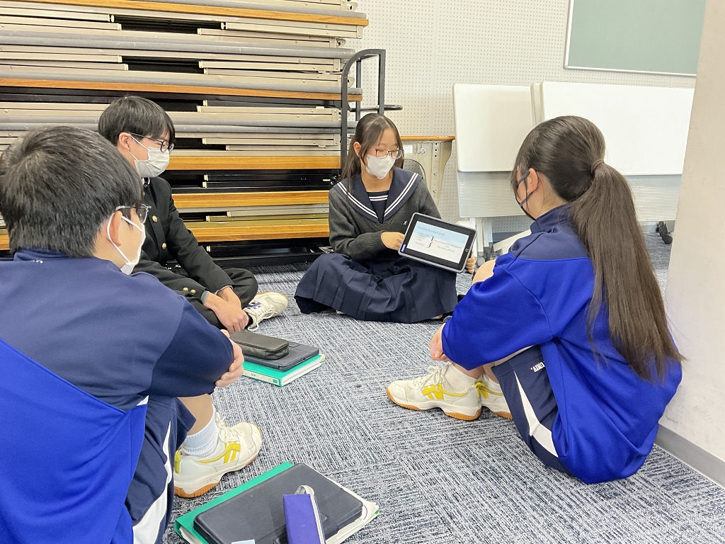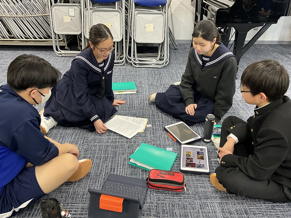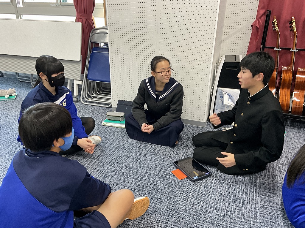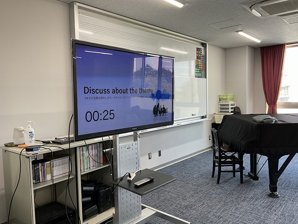 「これまで学習してきた英語を,これからの人生においてどのように表現していけるか」というテーマのもと,9年生はこれまで培ってきた英語力を活用し,後輩である8年生と英語でディスカッションを行いました。