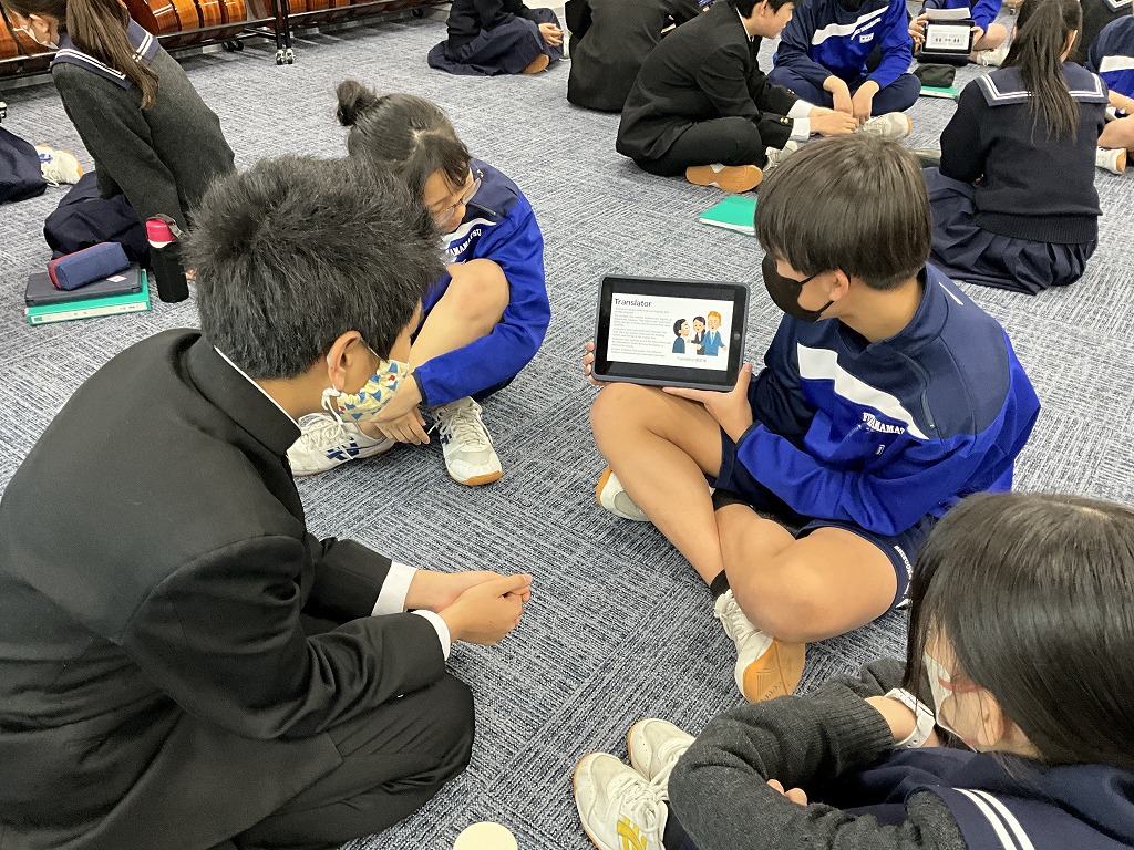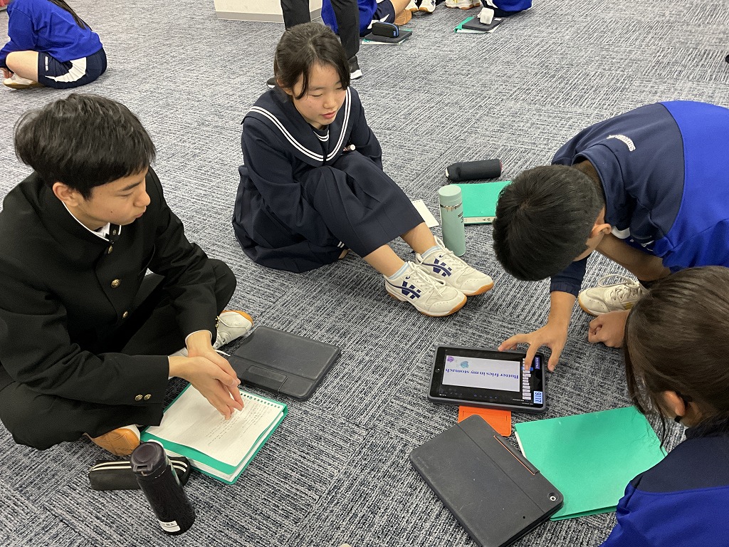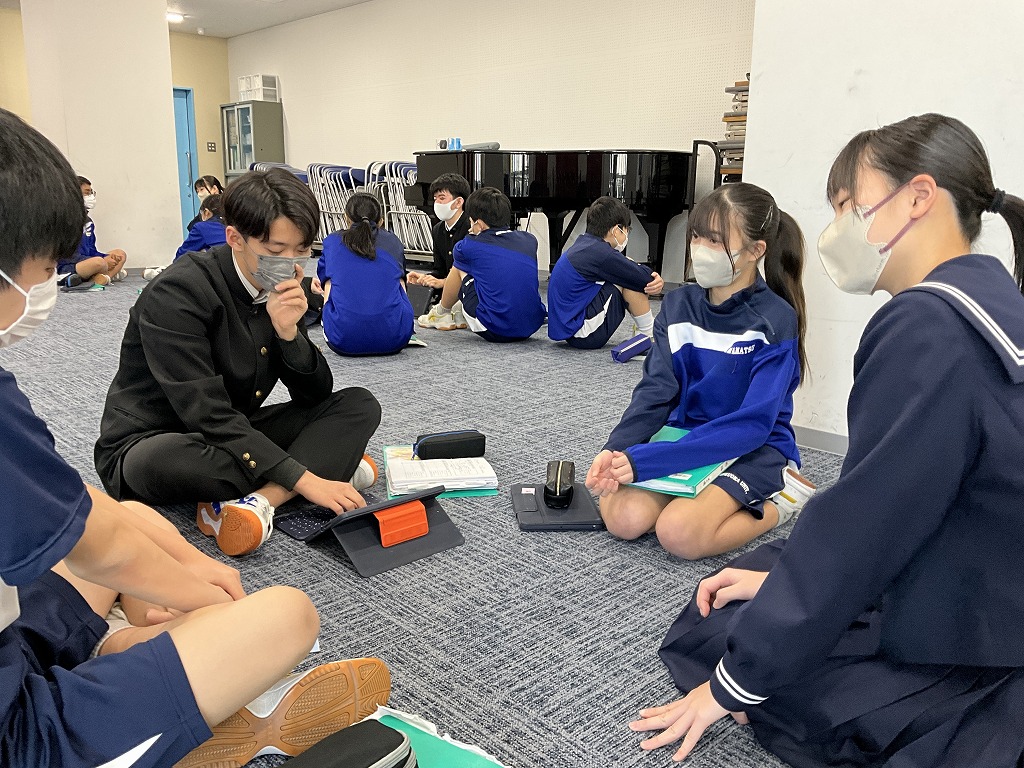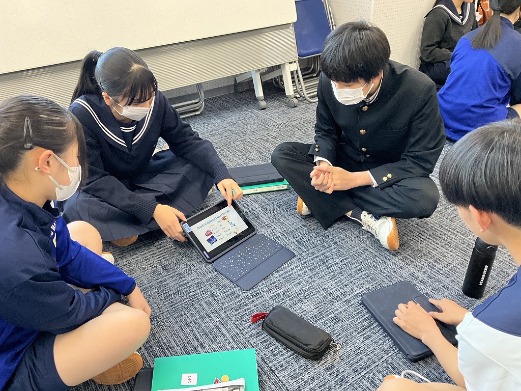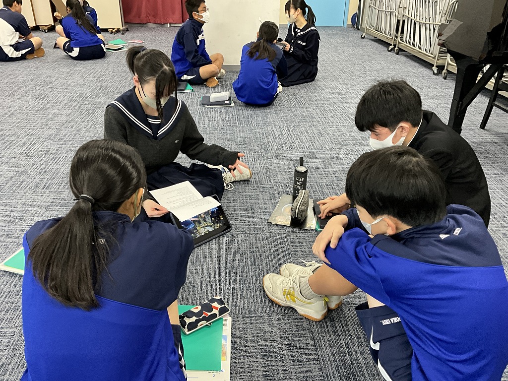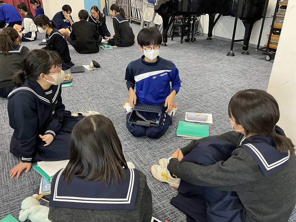 「これまで学習してきた英語を,これからの人生においてどのように表現していけるか」というテーマのもと,9年生はこれまで培ってきた英語力を活用し,後輩である8年生と英語でディスカッションを行いました。