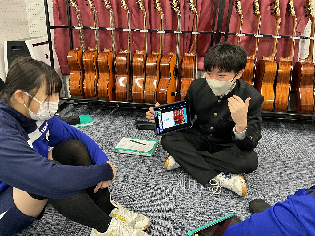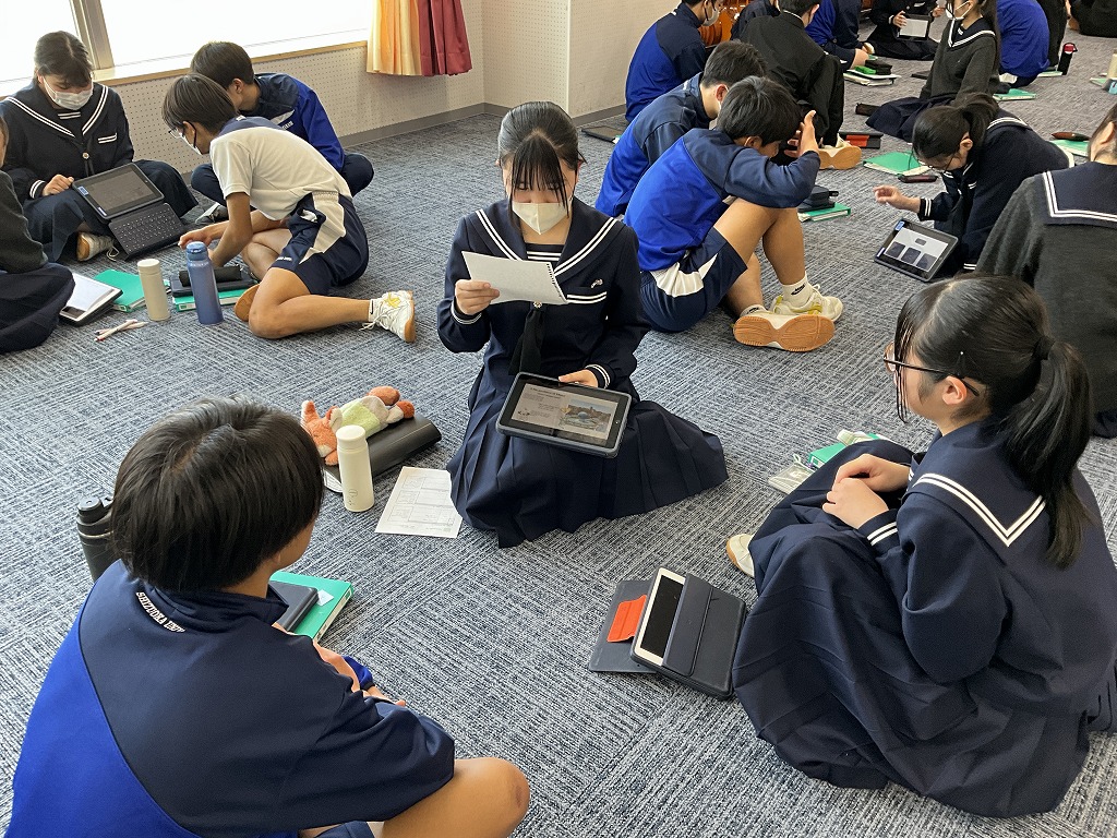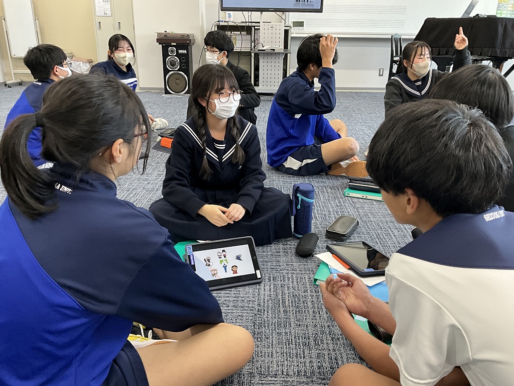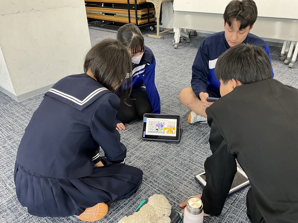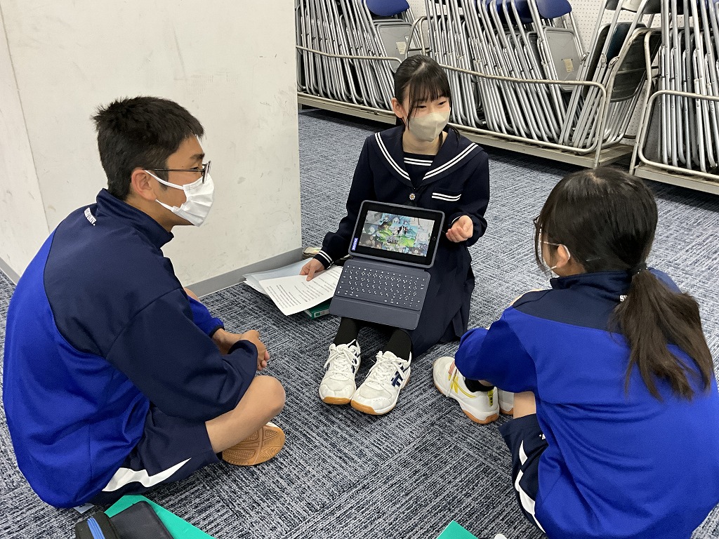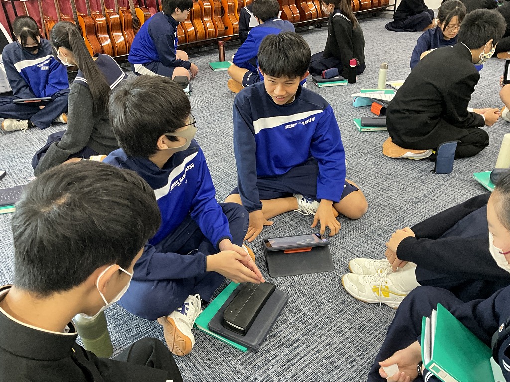 「これまで学習してきた英語を,これからの人生においてどのように表現していけるか」というテーマのもと,9年生はこれまで培ってきた英語力を活用し,後輩である8年生と英語でディスカッションを行いました。