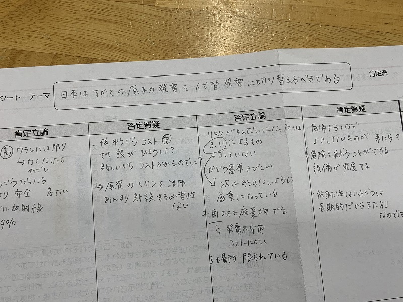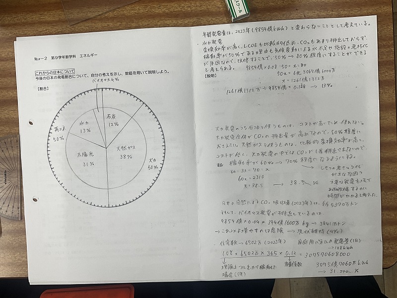 数学科ではエネルギーミックスについて,国語科や社会科ではエネルギーについてのディベートやディスカッションなど,エネルギーについて多面的に考えることができるようにカリキュラムを構成し,実践しました。