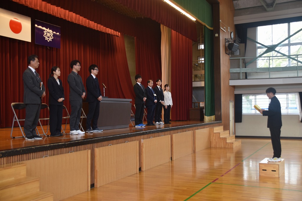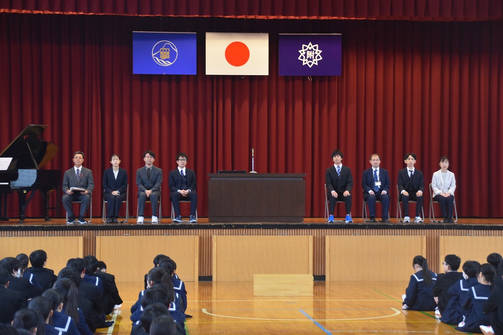 新任式では,4月から附属浜松中学校に赴任した職員の紹介がありました。