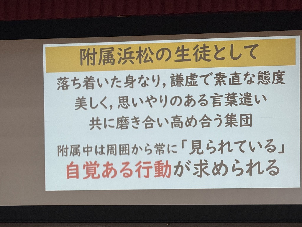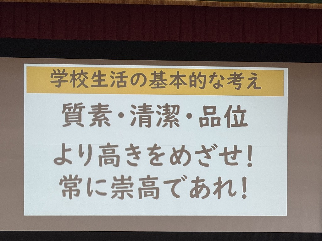 生活については,「質素・清潔・品位」「より高きをめざせ 常に崇高であれ」という生徒の合い言葉のもと,自らが考え,正しい判断ができるようにすることを意識しながら,全員で「誰もが嫌な思いをすることのない学校をめざしていく」ことを確認しました。