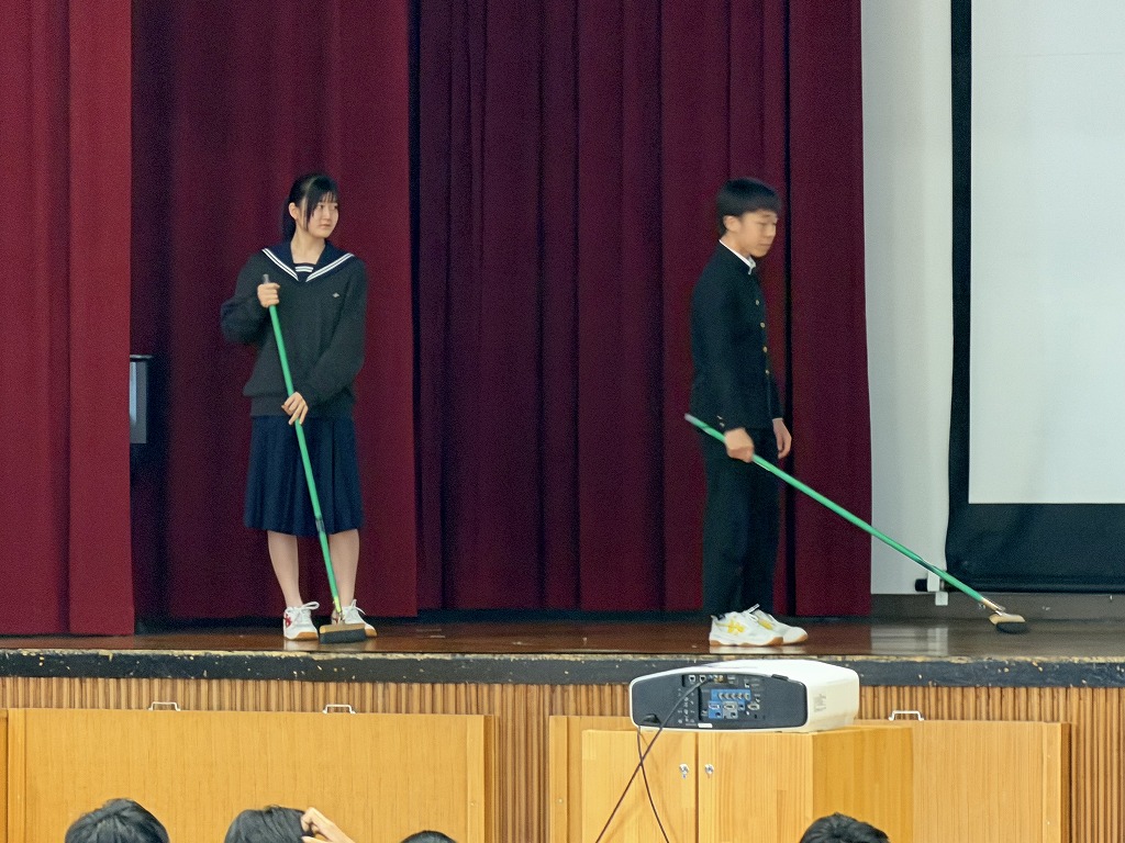 また,美化委員による清掃用具の使い方や清掃の仕方も説明もありました。