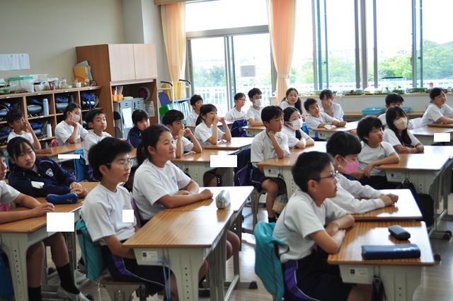 副校長より,校内に生息する植物に関する話がありました。子どもたちは,普段の生活では意識しない場所に美しい植物がたくさんあることを知り,感銘を受けていました。