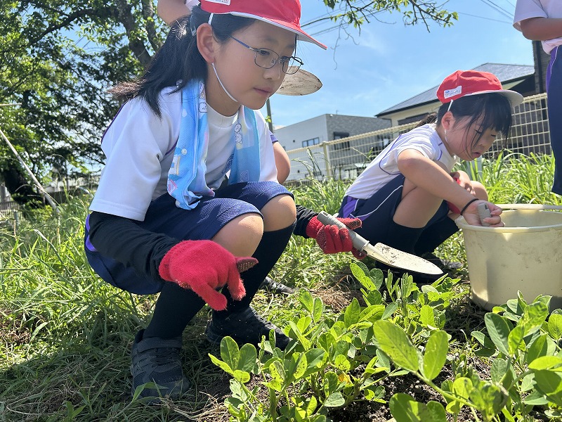 外部講師(通称ナッツ先生)を招いて,総合の学習で育てている落花生の手入れの仕方を確認しました。