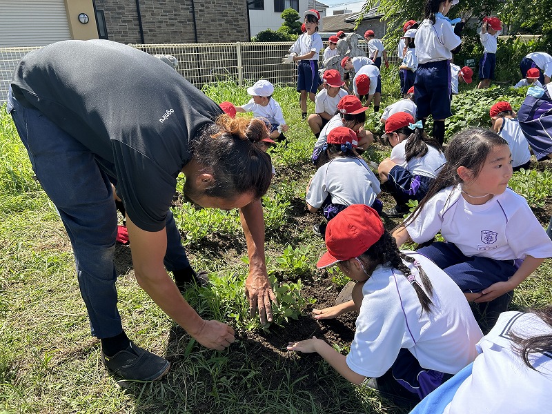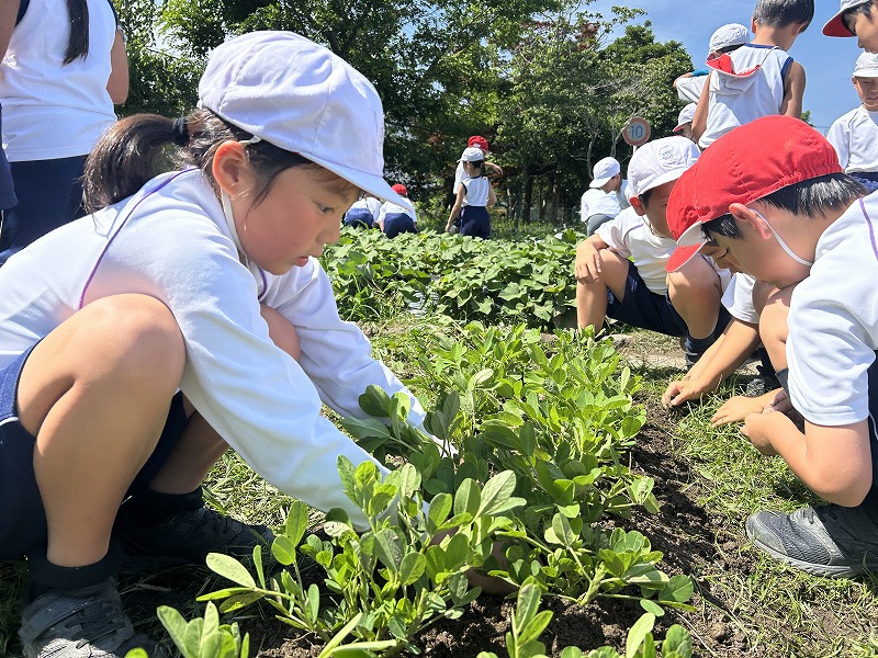 今回育てている「遠州小落花」は,浜名湖で取れた「貝,シラス,牡蠣」で作った肥料を与えます。子どもたちは,落花生が大きく育つように丁寧に肥料を与え,土寄せをしました。