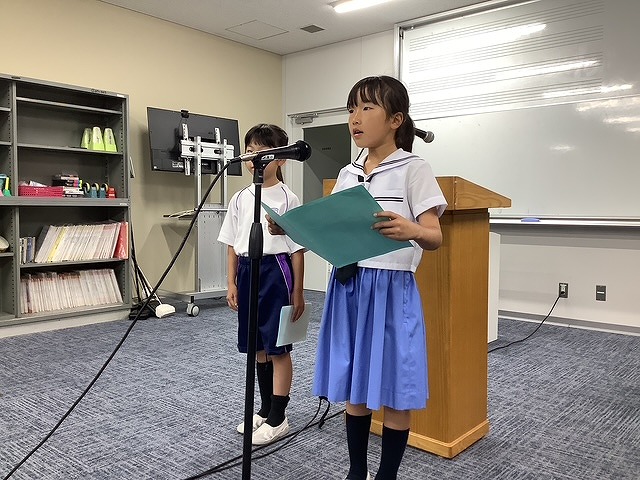 副校長先生のお話をお聞きした後、学年の代表児童から、1学期にがんばったことについての発表がありました。