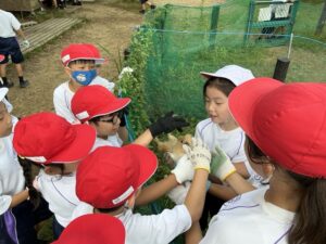 2年生の生活では、学校の敷地内で生き物さがしをしました。2年生の子どもたちは生き物が大好きです。自分専用の虫取りあみや虫かごを持っている子も多く、日常的に自然と親しんでいます。 今日は蒸し暑い日でしたが、こまめに水分補給 […]