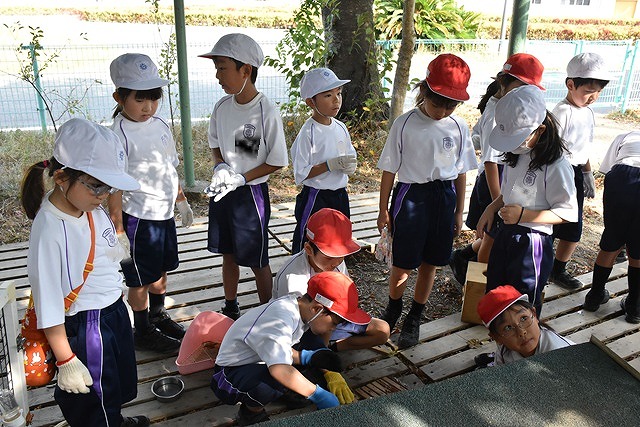 そのため,今は,2年生がお世話の仕方を1年生に教えながら,一緒に飼育活動をしています。