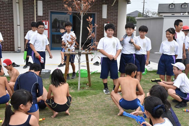 昼休みに,学校盛り上げプロジェクト主催による「水てっぽうイベント」が開催されました。