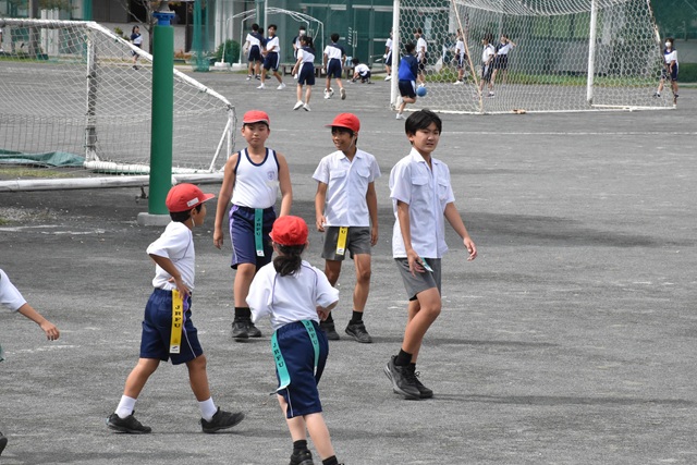 遊びのについて,下級生も自分たちも楽しめるように,6年生がルールを工夫していました。短い時間ですが,ふれあいグループの親睦を深めることができました。