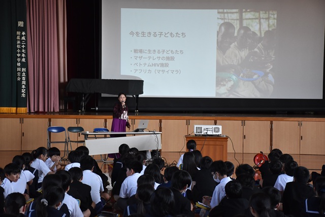 5校時に,フォトジャーナリストの講師をお招きして,平和学習を行いました。
