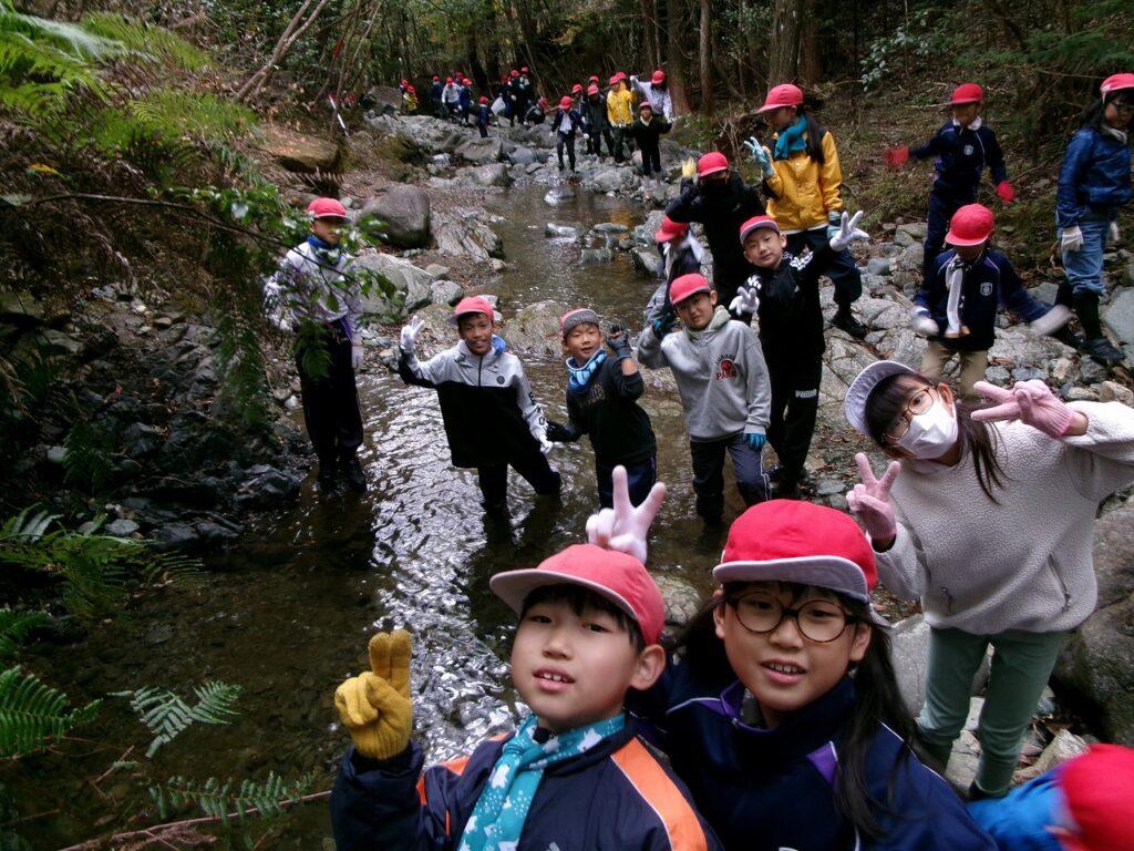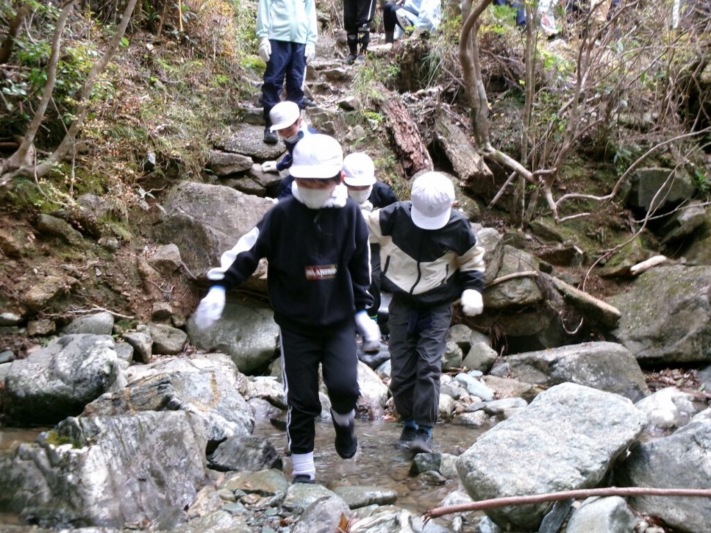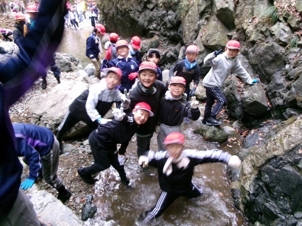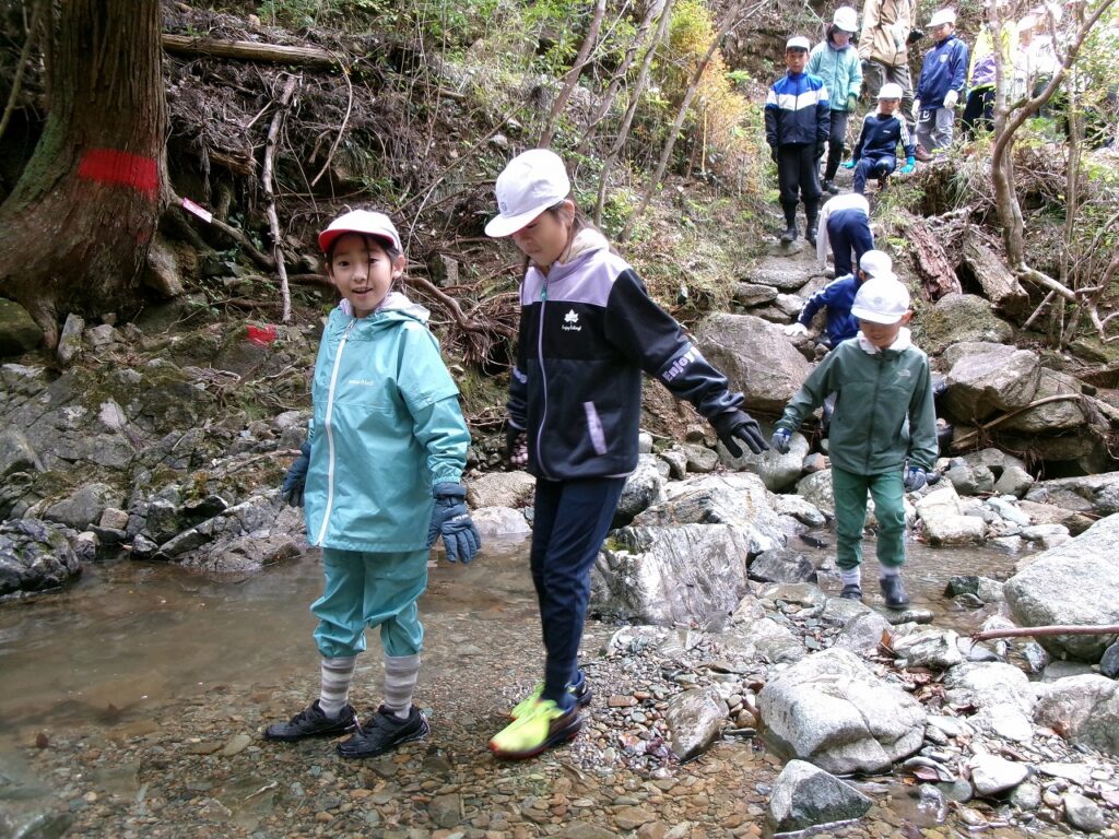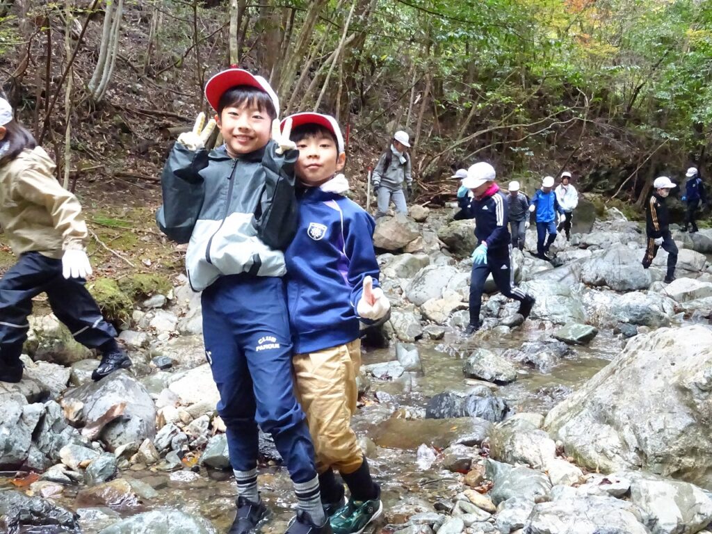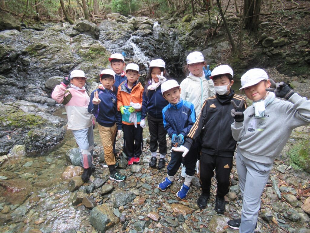 いよいよ楽しみにしていた沢登りです。沢の水の冷たさを感じながら、どんどん登っていきます。ここでも、4年生は3年生を気づかいながら、安全に活動を進めていました。