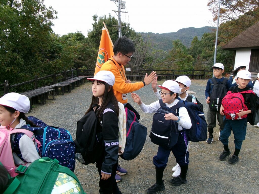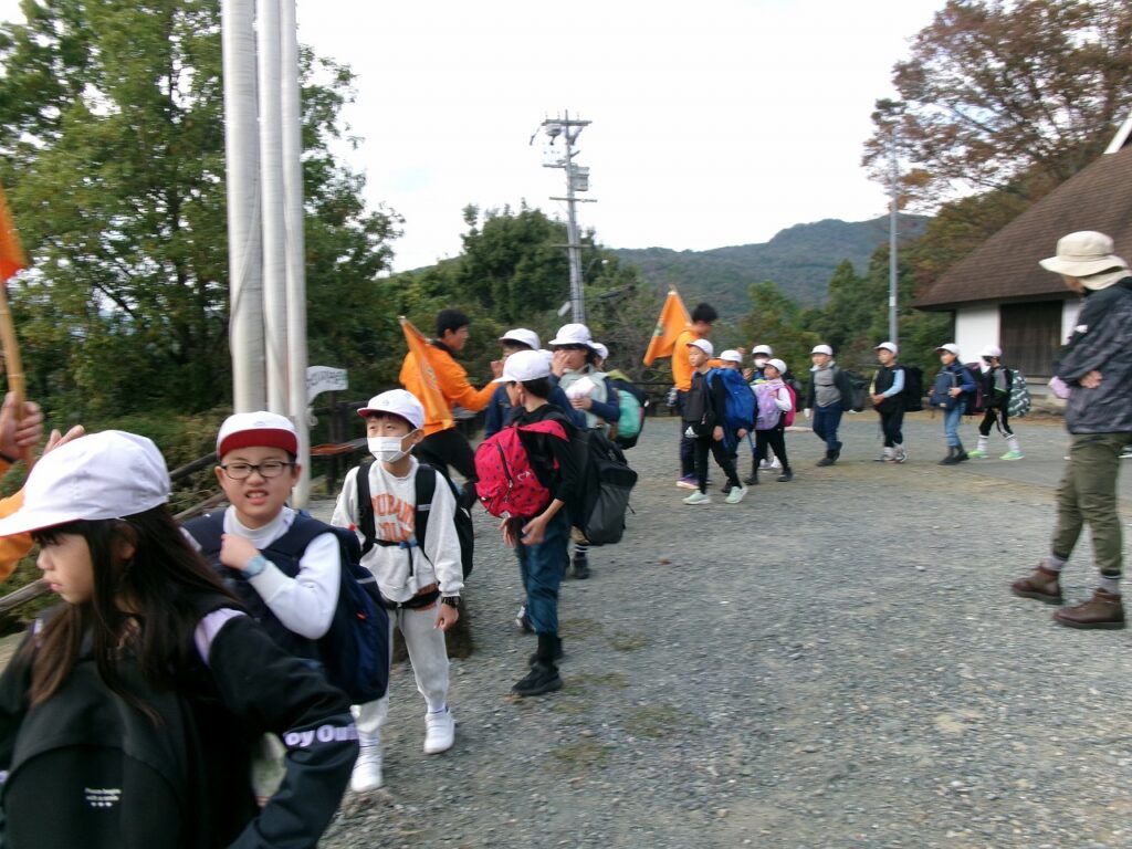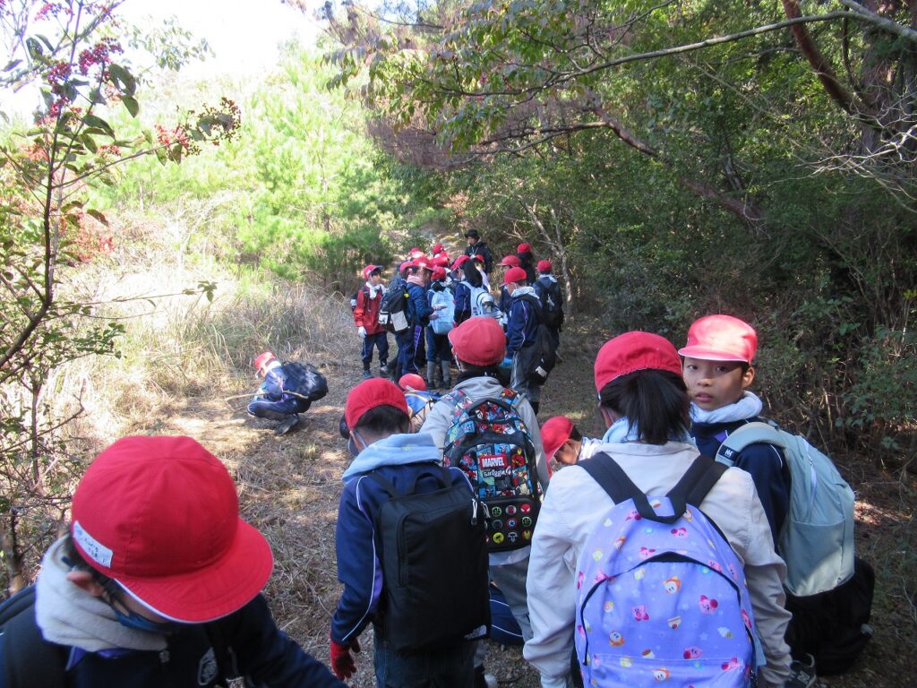「森林浴ハイク」が始まりました。4年生は、去年も自然学校に参加しているので、その経験を3年生に伝えます。3年生は、4年生に励ましてもらいながら、急な坂でもがんばって歩いていきます。