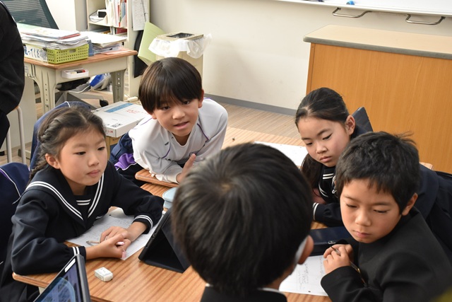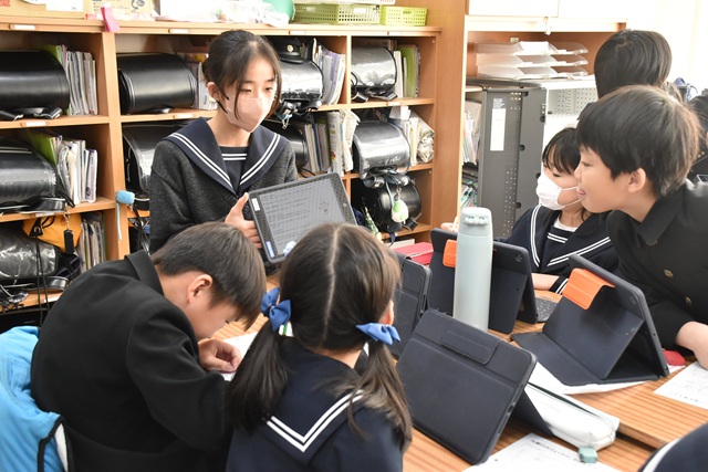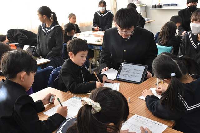 7年生は、家庭科の学習として、調べてきた大根を小学生に分かりやすくつたえることを目的に学習に取り組み、