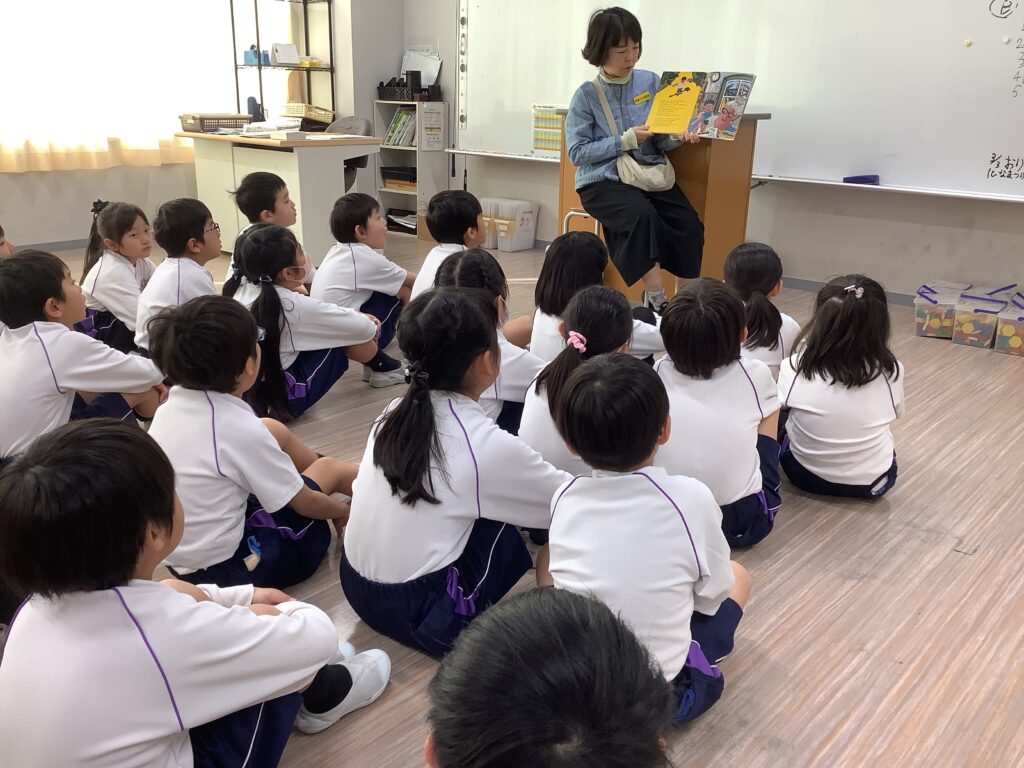 教室をのぞくと、どの子もボランティアの方々の語りにじっと耳を傾け、本の世界に深く入り込んでいる様子が印象的でした。お話に合わせて自然と笑いが起こったり、感嘆のつぶやきが漏れたりと、教室全体がとても穏やかで心地よい空気に包まれていました。