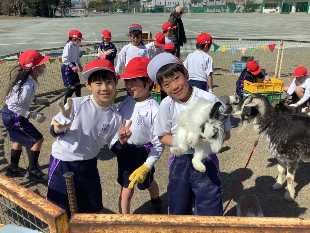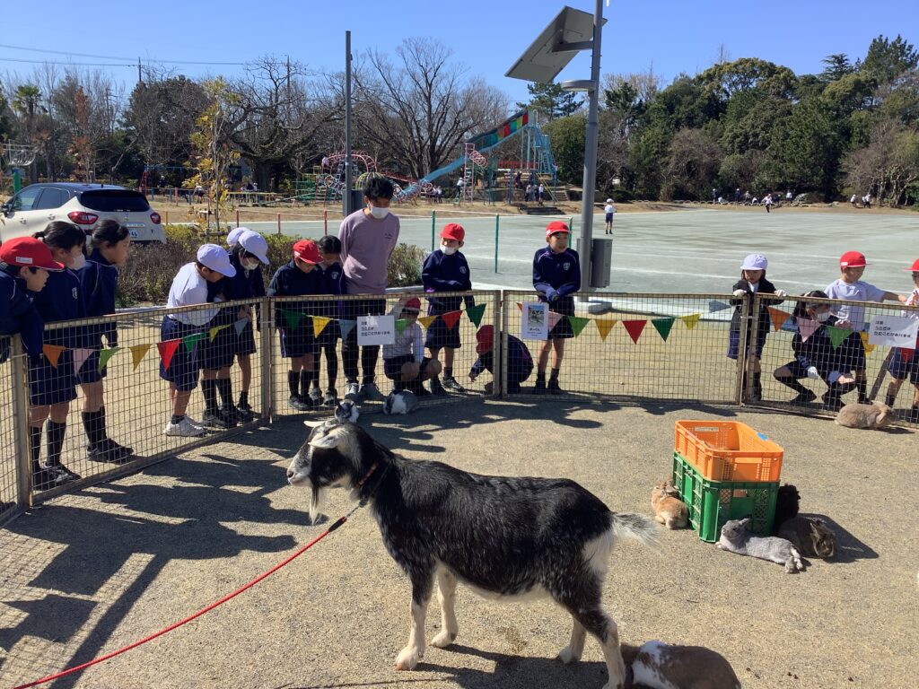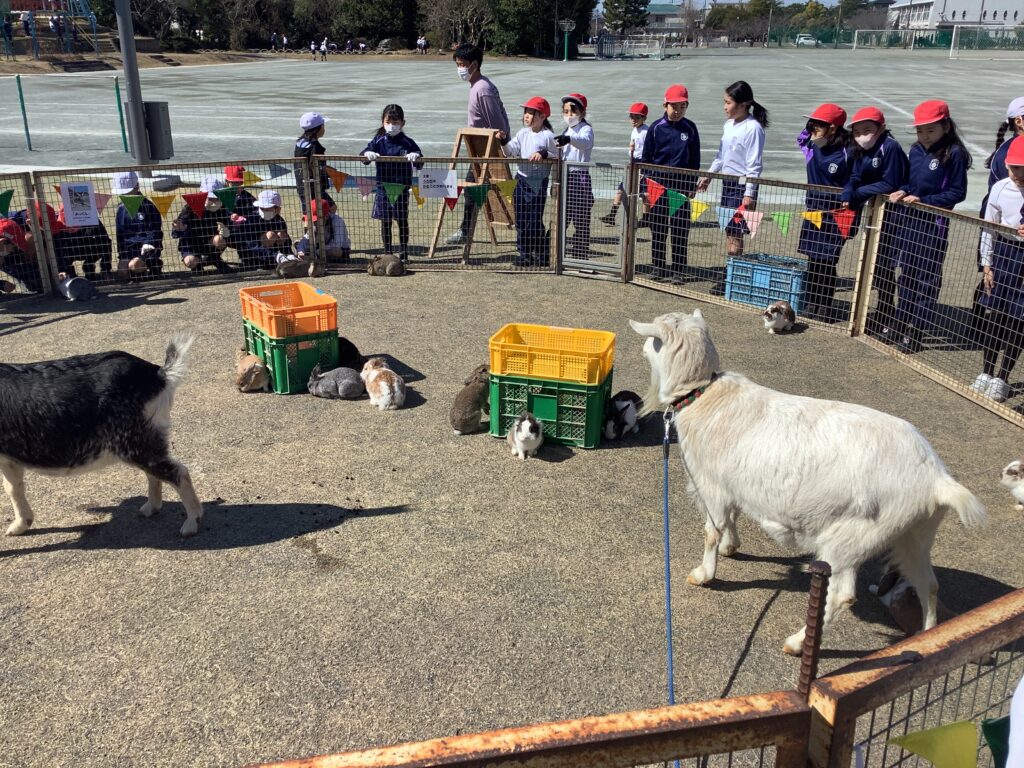 休み時間には、上級生や下級生も一緒になって動物たちを囲み、あたたかい雰囲気が広がりました。動物たちの温もりに触れ、命の大切さを肌で感じる、とても素敵な一日となりました。