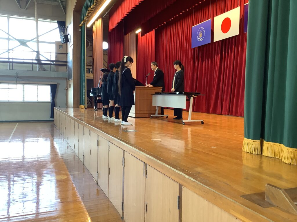 本日、無事に令和7年度の修了式を執り行いました。式では、各学年の代表児童が緊張感を持って修了証を受け取り、あわせて進級祝い品の贈呈も行われました。
