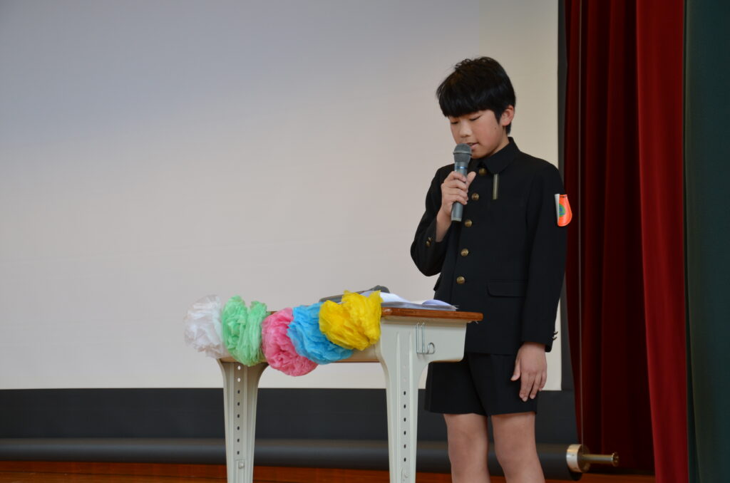 今日は、明日の会のために6年生が会場の準備をしたり、リハーサルをしたりしました。