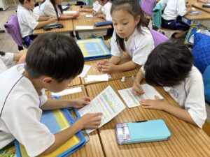 低学年では、「第1回 わくわく旅行」に向けての計画を立てています。今日は、1年生と2年生の縦割りグループで話合い活動をしました。 「みんなで たのしく すごすために なにができるかな」というテーマのもと、グループごとにめ […]