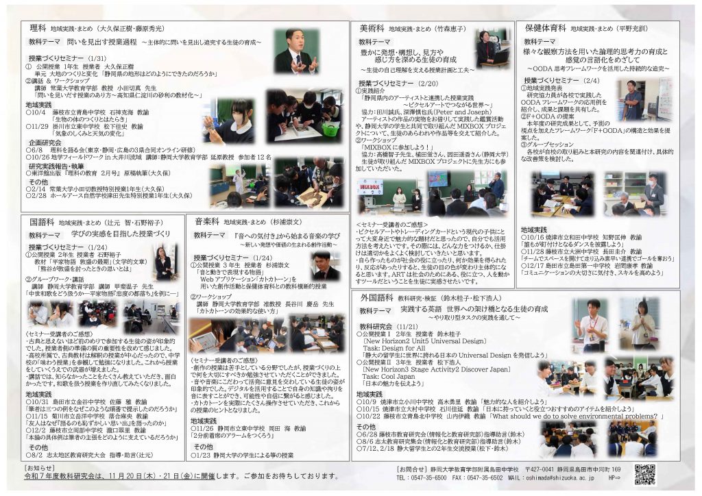 附属島田中学校の研究・研修に関する全体的なご案内を公開します。