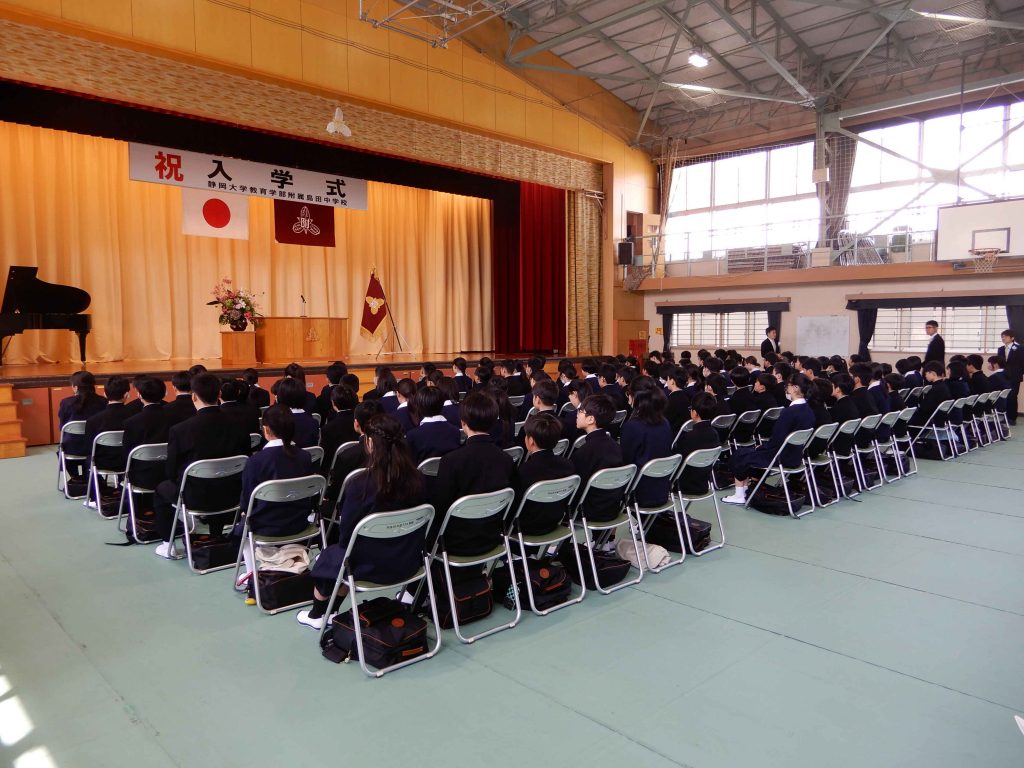 入学式では、附属島田中学校での学校生活に期待を高めている新入生の表情が見られました。