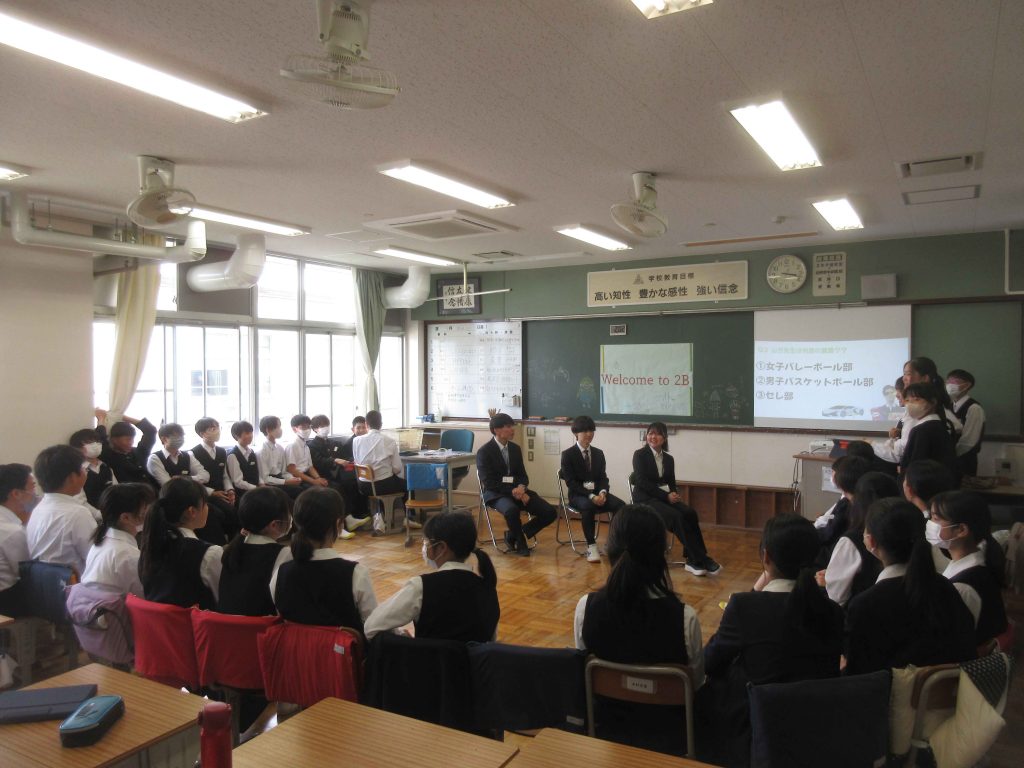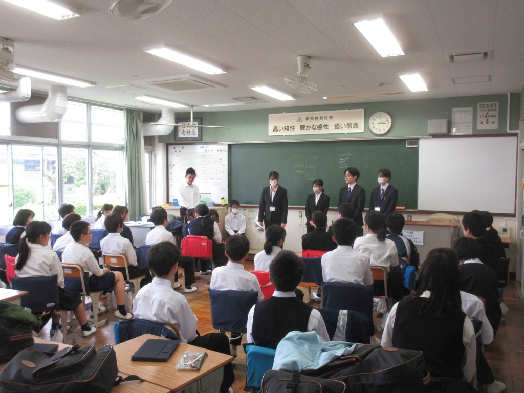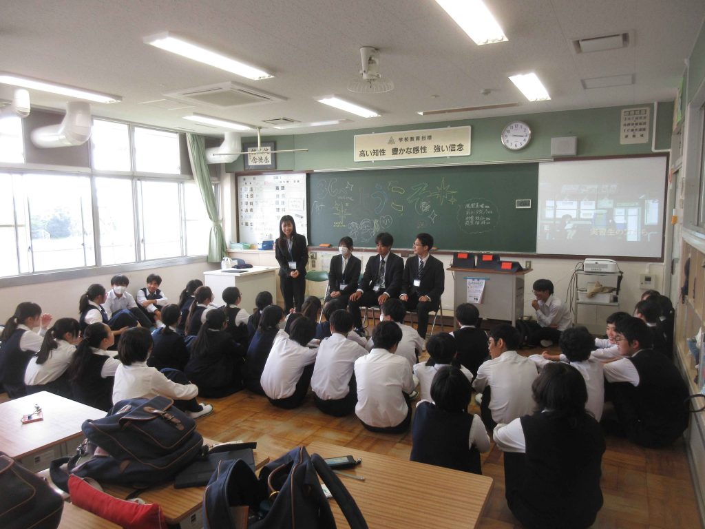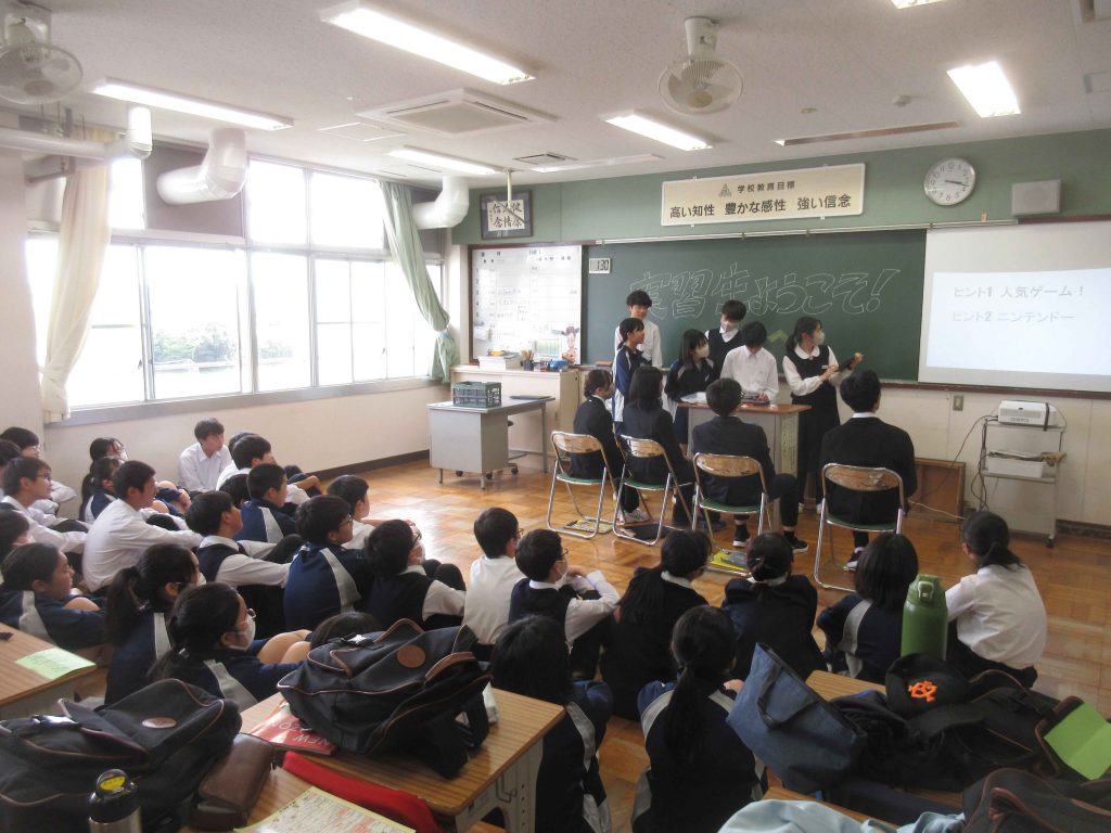 初日は歓迎会が行われ、生徒と教育実習生の「出会い」がありました。どのクラスも個性あふれる歓迎会で、生徒にも実習生にも笑顔が見られました。