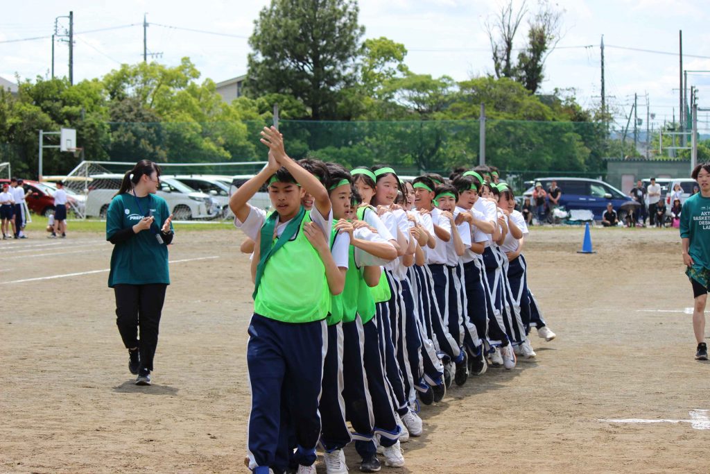 前日の雨の影響で開催が心配されましたが、グラウンドを整備し、種目の順番を変え、時間を遅らせて開催することができました。