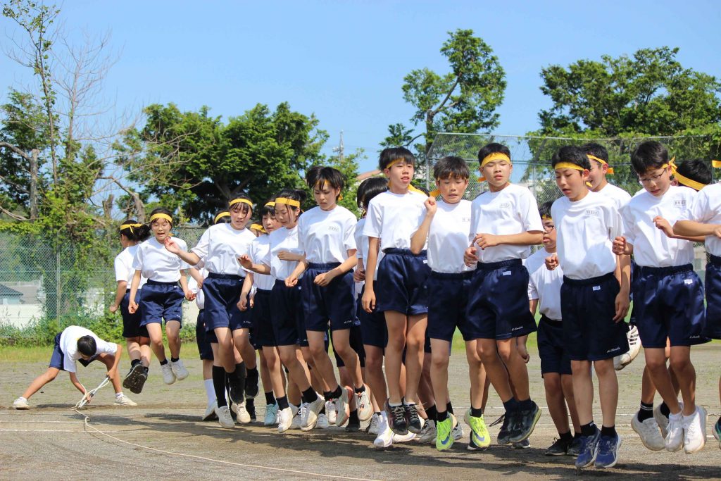 ゆう陸最後の種目の長縄では、学級全員で気持ちを揃え、これまでの練習の全てをぶつけるような熱い思いが、全学級で感じられました。最初から6分間1回も縄にかからずに跳びきった学級もありました。